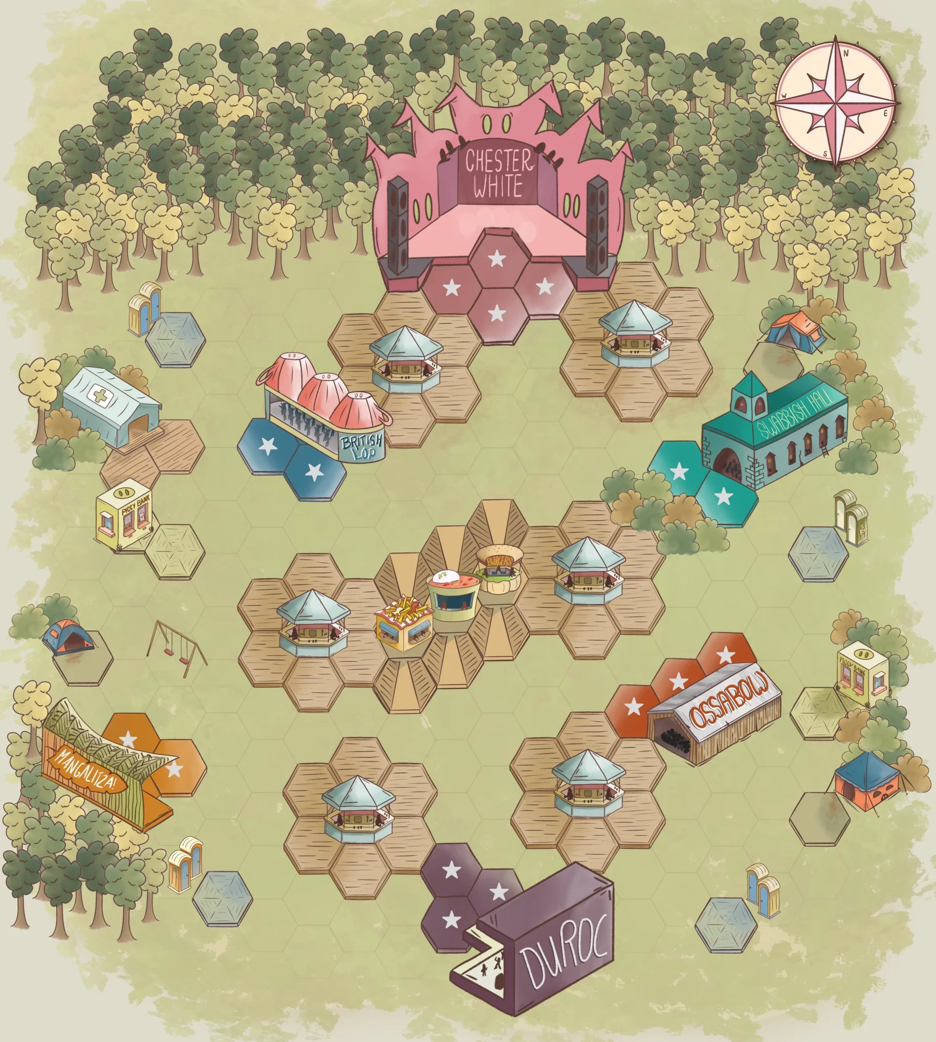 Heb je ooit geprobeerd om een groepsfoto te maken op een festival? Met acht mensen, twee lege telefoons, iemand die naar het toilet is en iemand die er duidelijk niet goed aan toe is? Dat is Boaromia Festival. Een coöperatief bordspel waarin jij en je vrienden proberen te overleven op het meest chaotische festival ooit, zonder je huis te verlaten of een tetanusinjectie nodig te hebben.